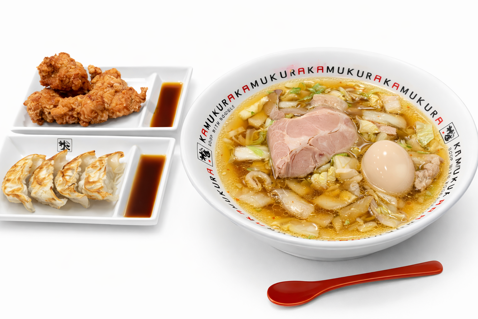 ✅ 맛있는 라면(おいしいラーメン) – 카무쿠라의 대표 메뉴! 닭 & 야채 베이스의 맑은 국물과 부드러운 차슈, 아삭한 배추의 조합이 일품.